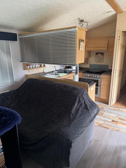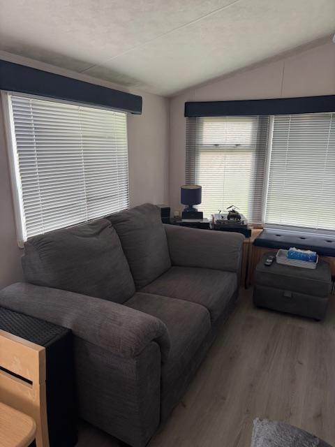Lounge with built in seating, pull out sofa bed, and gas fire.